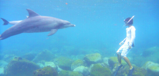 イルカと泳ぐ体験、社会的養護下の子どもたちに
