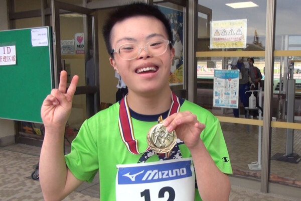 昨年、宮崎で開催された「全国ダウン症アスリート陸上競技記録会」には本格的なスパイクを履いて参加した和真さん。60メートル走が11秒04、100メートル走は18秒96という好成績を記録しました。