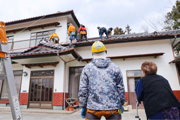 「僕らがいなくなった後にまた困る方がおられたらどうしようもないので、鴨川市では、地元の有志の方たちに集まっていただき、安全に屋根に登り、ブルーシートを張れる人を育てました。大阪北部地震(2018年)でも、同じように屋根被害が多く、1年2〜3ヶ月の間、ずっと活動させてもらいました」
