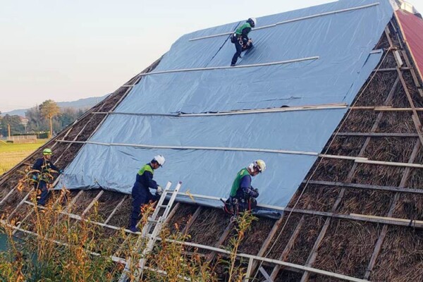 「台風によって屋根被害を受けたお宅が多く、近隣の市も回って、瓦が飛んでしまった屋根にブルーシートを張る作業を行いました。ただ、ブルーシートは紫外線で劣化して破けてしまいます。業者は予約がいっぱいで、なかなか順番が回ってこない、あるいは修理を依頼する経済的な余裕がないというご家庭も少なくありません」