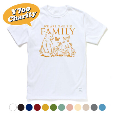 JAMMINがデザインしたコラボデザインには、頭に花かんむりを乗せた子ぐまとうさぎ、それをやさしく見守る親ぐまを描きました。家族ではなくても親戚のように、互いに心を寄せ、支え合って生きる社会への思いと祈りを込めています。