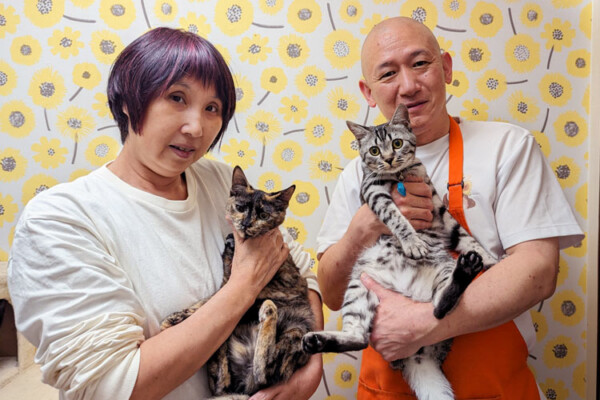 「子猫を対象としているので、『赤ちゃん猫が庭に迷い込んできた』とか、餌やりさんから『親猫が子猫を5匹連れてきたけど、うちでは飼えないから里親を探してほしい』などとご連絡があります。昨年春から年末にかけては、90〜100匹を保護しました。毎年このぐらいの数の猫を引き取っています」と話すのは、5年前に夫の吉修(よしのぶ)さん(57)とともにカフェをスタートした祖父江昌子(そぶえ・まさこ)さん(57)。