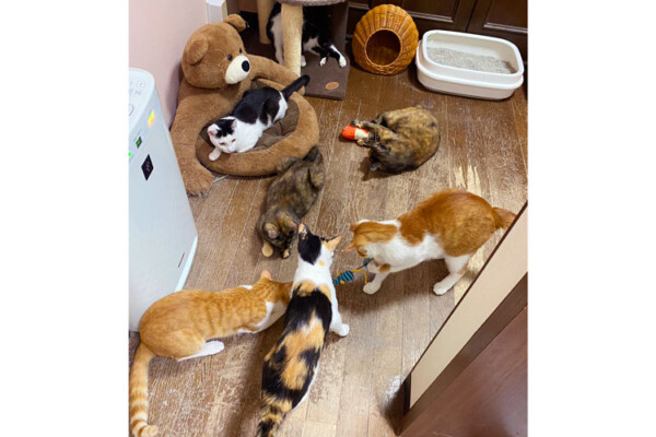 さらに自宅の3階をシェルターとして使っており、カフェデビュー前の赤ちゃん猫や病気で治療中の猫たちが生活しています。「猫エイズや猫白血病、猫伝染性腹膜炎など病気ごとに部屋を分けて、ケージではなく部屋で自由に過ごせるようにしています」と昌子さん。現在、バスに19匹、シェルターには24匹の猫がいます。