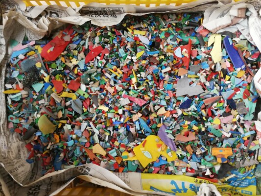 プラスチックと言ってもポリエチレン(PE)、ポリプロピレン(PP)、ポリスチレン(PS)、アクリロニトリル-スチレン樹脂(AS)、アクリロニトリル-ブタジエン-スチレン樹脂(ABS)、ポリ塩化ビニル(PVC)、そしてポリエチレンテレフタラート(PET)など多くの種類があって、それぞれに特性、使用用途がありますが、ほとんどの種類のプラスチックは、自然界に流出して海岸に流れ着くと太陽の熱と紫外線で劣化して、やがて小さいマイクロプラスチックになっていきます。
