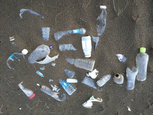 各地でクリーンビーチ活動をされている方は感じていると思いますが、赤や青や緑などのカラフルなプラスチック製品の破片、5ミリ以下のマイクロプラスチックは無数に見つかるのですが、ペットボトルの透明な大きな破片も、また小さな透明な明らかにペットボトル由来だと思われるマイクロプラスチックはなかなか見当たりません。