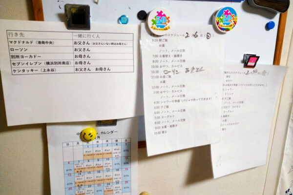 「ファーストフード店やコンビニに一緒に行くのですが、たとえば同じコンビニでも、A店とB店は本人にとって全く別の店です。何曜日に何店に、また誰と行くかということも紙に書いて共有しています。