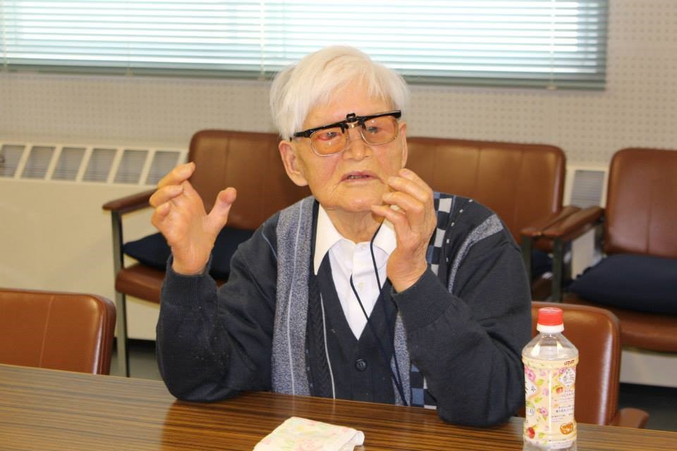 おかあさんという名前は通称の呼び名で、上の写真では右側に座っている男性。障がいを持って生まれ、生まれてすぐにゴミ箱に捨てられていた。そして2010年には余命3年と宣告を受けるなど壮絶な人生。現在は、命をかけた講演を続けている。
