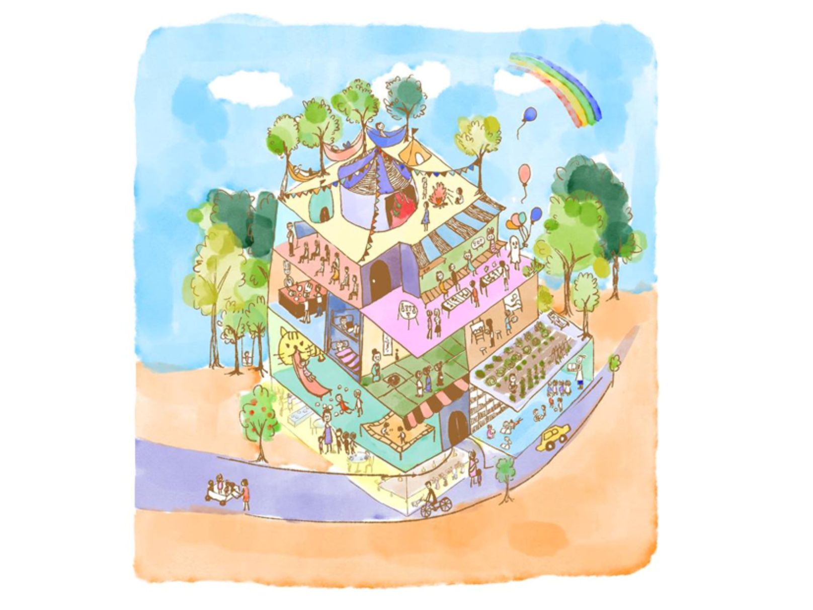 JAMMINがデザインしたコラボデザインに描かれているのは、さんさんと輝く唯一無二の太陽と、太陽の光を浴びて強く育つ植物の姿。親と子、互いに唯一無二の存在である者同士、愛情を注ぎ合いながら生き生きと強く生きる様子を表現すると同時に、同じ太陽の下、障害の有無にかかわらず、誰もが自分らしく、力強く生きる様子を表現しています。
